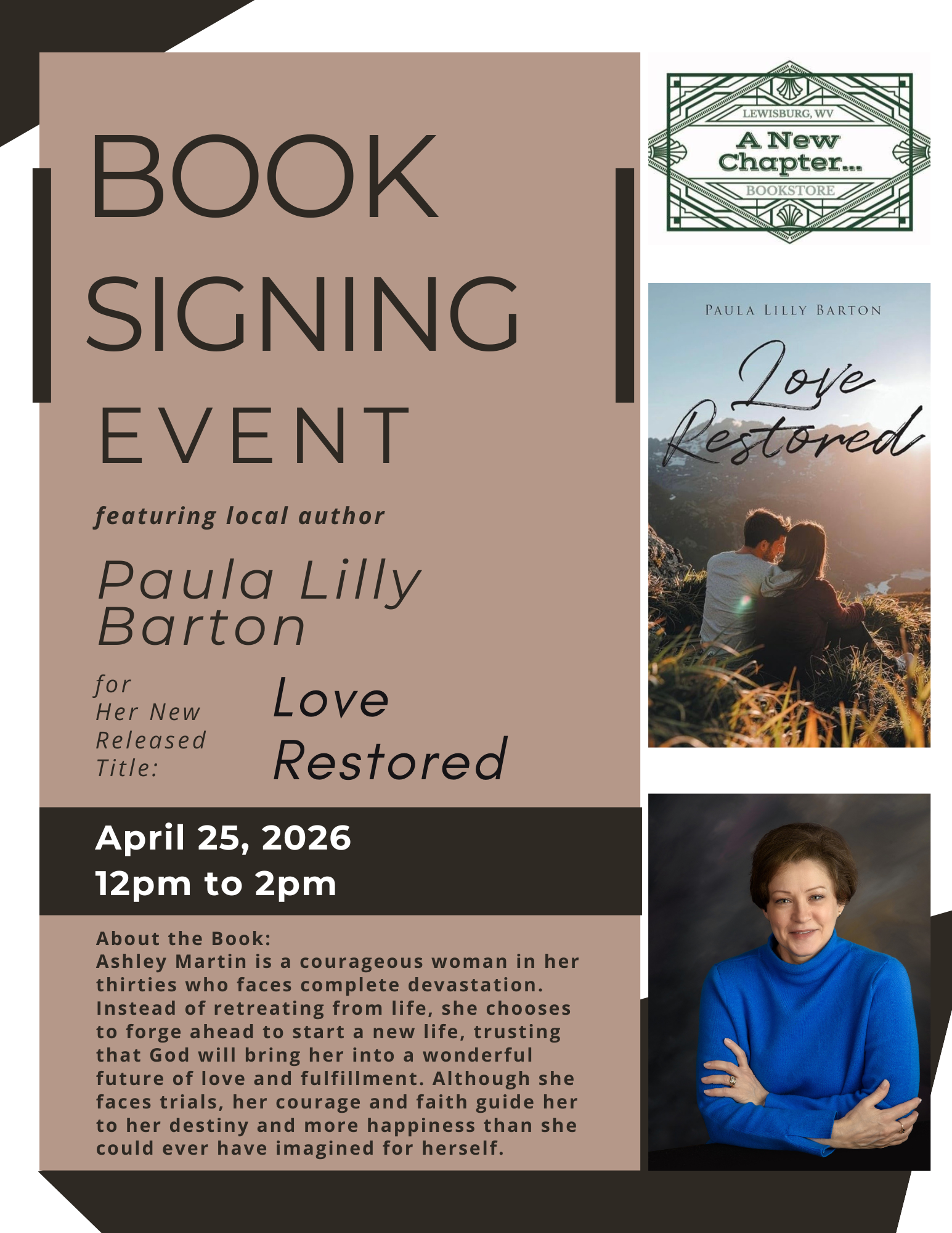 Please RSVP in-store, message Facebook, call 681-318-3501, or email shaye@newchapterbookswv.com.